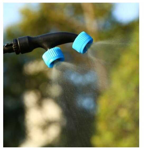 - Подходит для обработки как низкорослых культур (грядки, цветники), так и высокорослых насаждений (деревья, кустарники) при использовании соответствующей насадки и штанги.