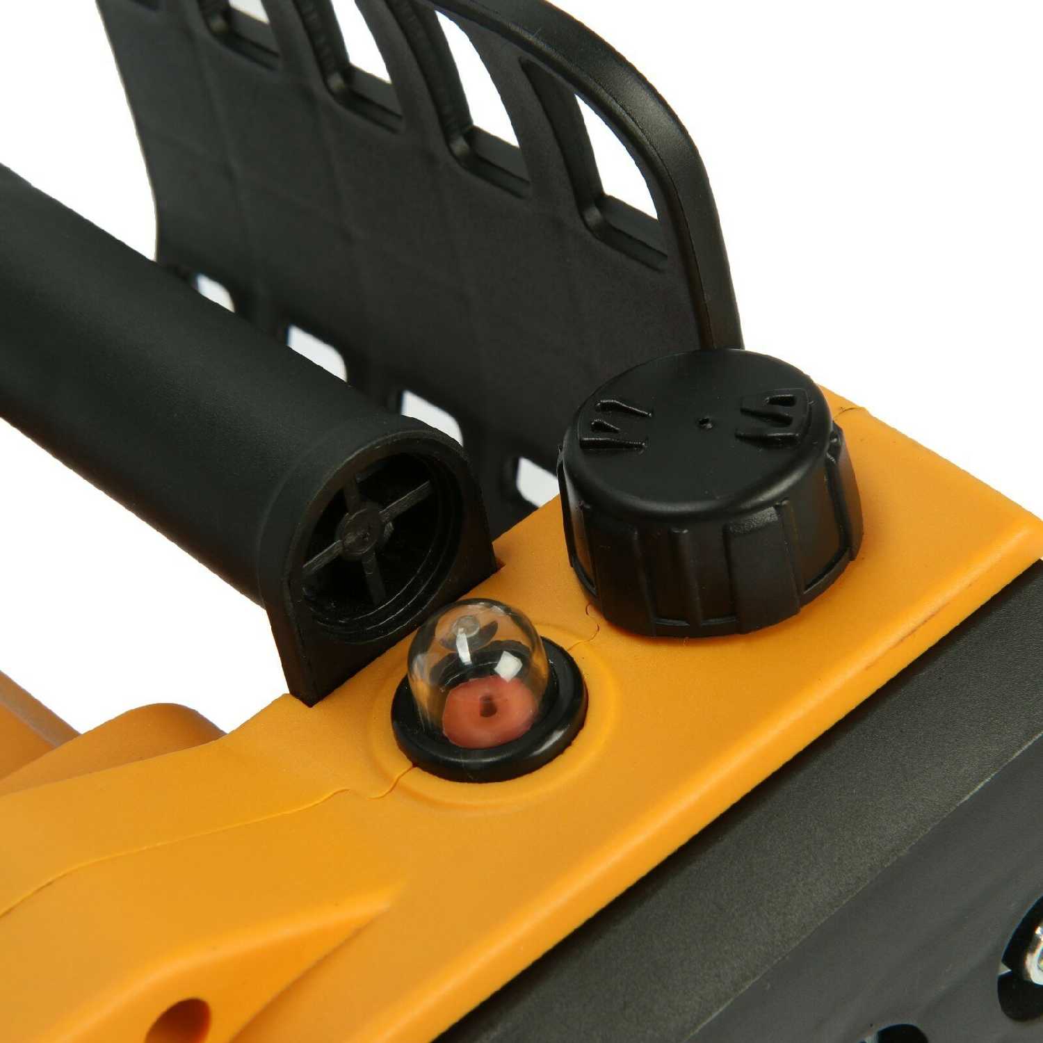 Удобство и эргономика Компактность и малый вес (отмечается, что даже ребёнок 10 лет может управлять пилой) — ключевые преимущества. Инструмент легко маневрирует в труднодоступных местах, где громоздкие сетевые аналоги (например, Makita) бесполезны из-за габаритов и зависимости от удлинителя. Эргономичная рукоятка обеспечивает комфортный хват одной или двумя руками, а автоматическая подача масла на цепь снижает трение. Серьёзным недостатком признан неудобный механизм натяжения цепи: пластиковый винт требует усилий, направляющая шины короткая, а регулировочный ключ не имеет места для хранения. Цепь часто провисает и слетает даже после натяжки, особенно при использовании штатной 46-звенной цепи вместо рекомендованной 45-звенной.
