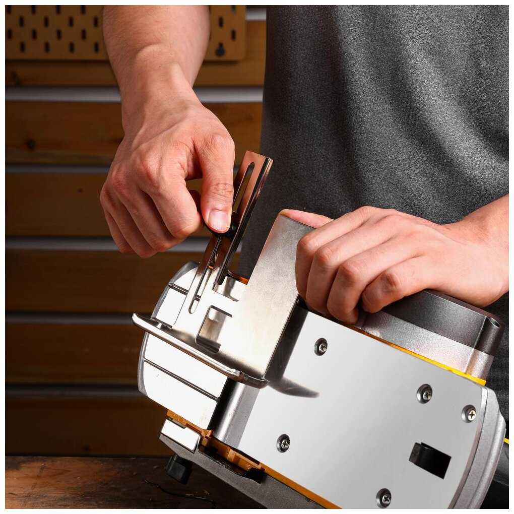 - Ровная подошва из алюминиевого сплава, обеспечивающая точность строгания после регулировки.
