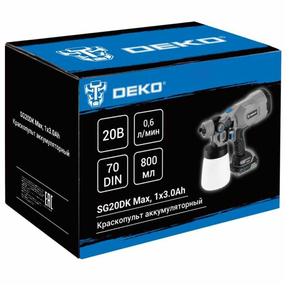Краскопульт Deko SG20DK Max [20В, 800 мл, 1x3.0Ач] — 12 отзывов, плюсы и минусы