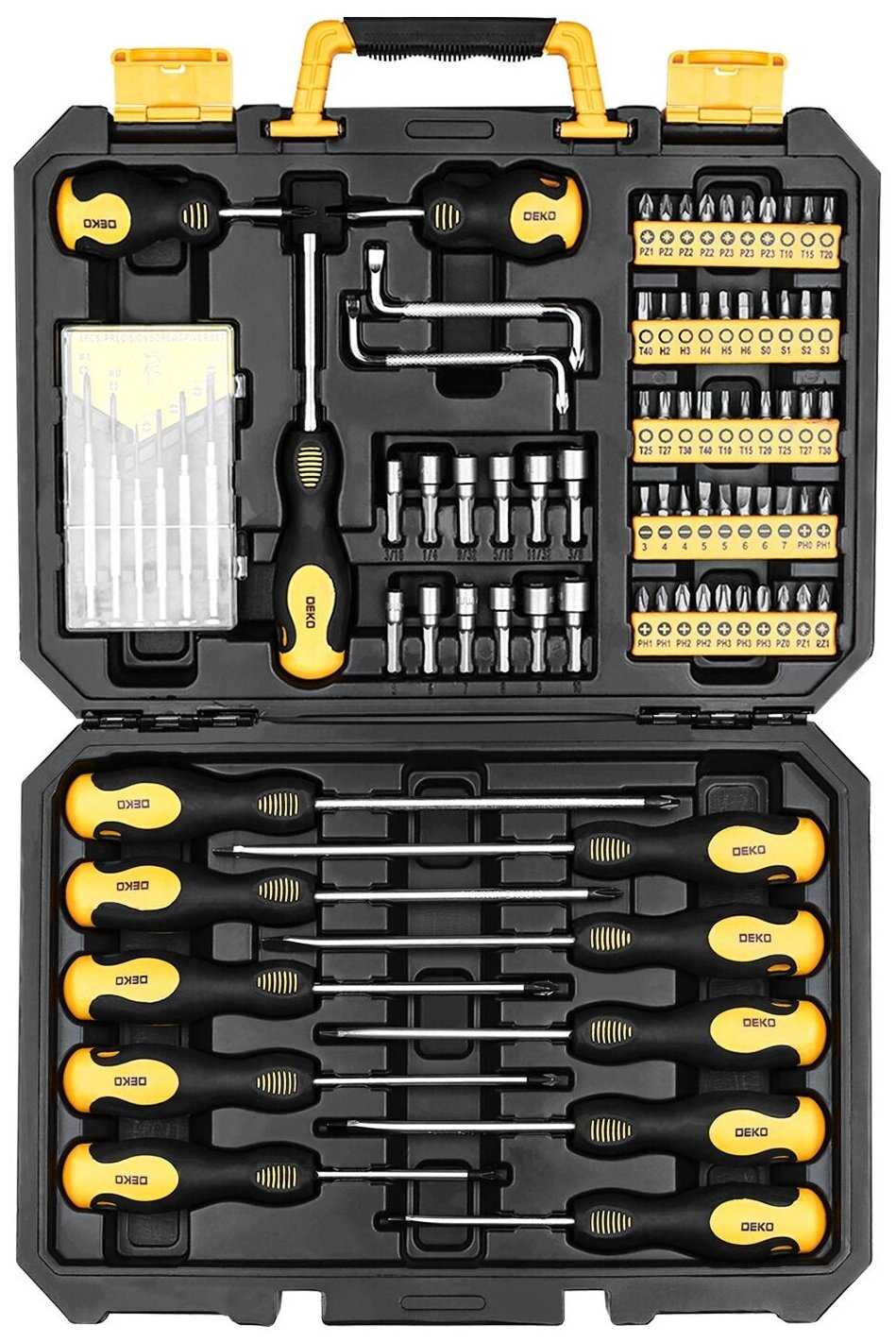 Дополнительная информация : | Комплектация: 12 шт отвертки (SL6x38 5х75 5х100 6x100 6x125 6x150 мм, PH2x38 1x75 1x100 2x100 2x125 2x150 мм), 1 шт держатель для бит 6.35 мм, 6 шт прецизионные отвертки (PH0 1 SL1.4 2.0 2.4 3.0), 2 шт z-образный ключ (PH1 x SL5 PH2 x SL6), 50 шт бита (SL3 4 4 5 5 6 6 7, PH0 1 1 1 2 2 3 3 3, PZ0 1 1 1 2 2 3 3 3, T10 15 20 25 27 30 40, H2 3 4 5 6 S0 1 2 3), 12 шт бита-головка (Metric 5 6 7 8 9 10 мм, SAE 3/16 1/4 9/32 5/16 11/32 3/8") |