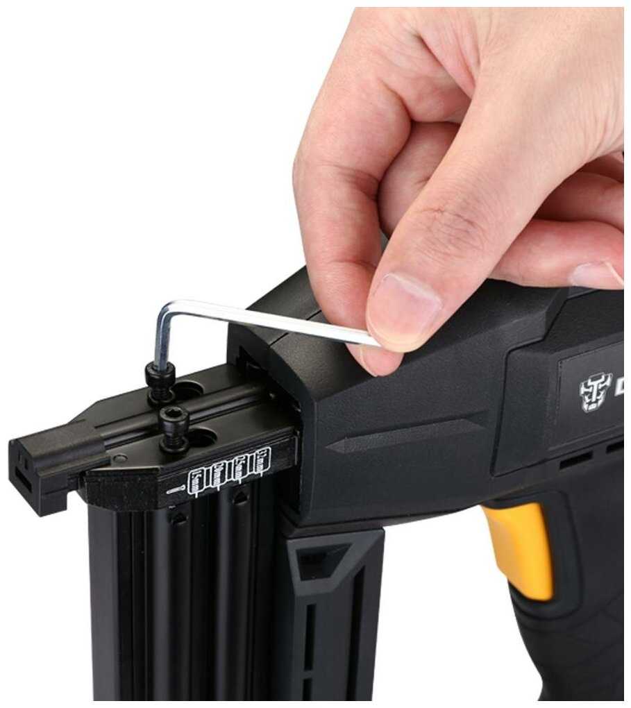 Инструмент оснащён многоступенчатой регулировкой мощности (пользователи отмечают до 21 щелчка), что позволяет адаптировать его под разные материалы. Например, на минимальных настройках гвозди 25 мм могут недобивать в плотную древесину, а на максимуме скобы уверенно пробивают фанеру толщиной 18–20 мм. Важно учитывать, что прижим инструмента руками напрямую влияет на глубину забивания: при слабом надавливании возможны недобои. -