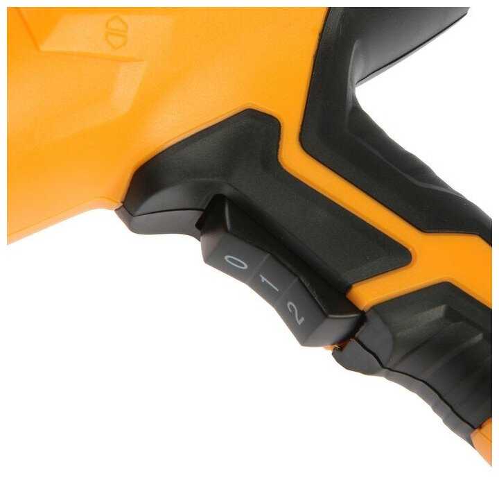 Тепловая производительность и управление Фен демонстрирует высокую скорость нагрева (до 600°C на втором режиме) и мощный воздушный поток, что позволяет эффективно снимать многослойную краску, разогревать пластик автомобильных деталей или работать с термоусадкой. Однако управление температурой примитивно: только две фиксированные ступени без плавной регулировки. Переключение между режимами осуществляется тумблером, который пользователи отмечают как излишне чувствительный или ненадёжный – встречаются жалобы на отказ второго режима после интенсивной эксплуатации. Критически важным пользователи считают требование переключаться на первый режим за минуту до полного выключения для частичного охлаждения спирали, игнорирование этого правила ведёт к перегреву и поломке. Отсутствие функции холодного обдува не позволяет оперативно снизить температуру насадок или внутренних компонентов.