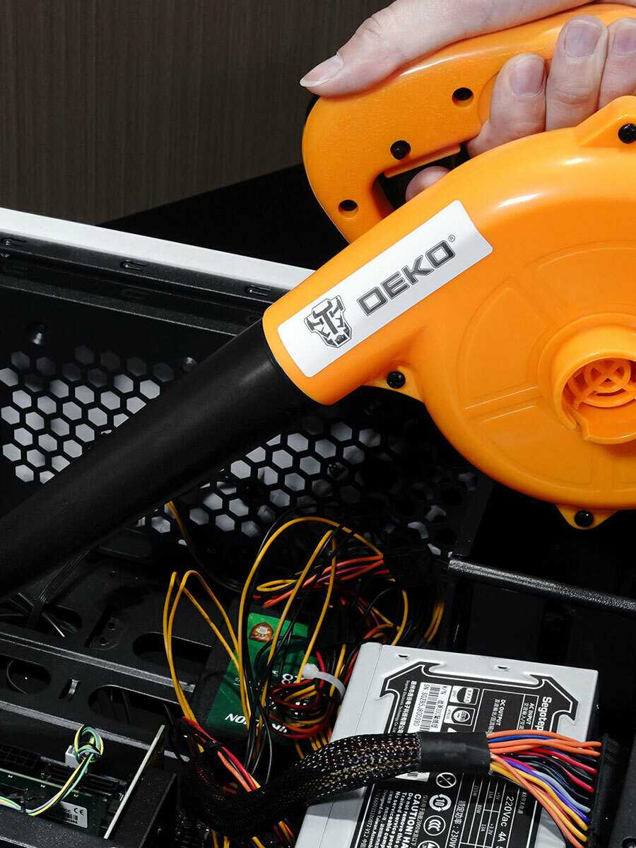 - Вес менее 1.5 кг и компактные габариты позволяют продувать узкие щели в компьютерах, автомобильных панелях, бытовой технике.