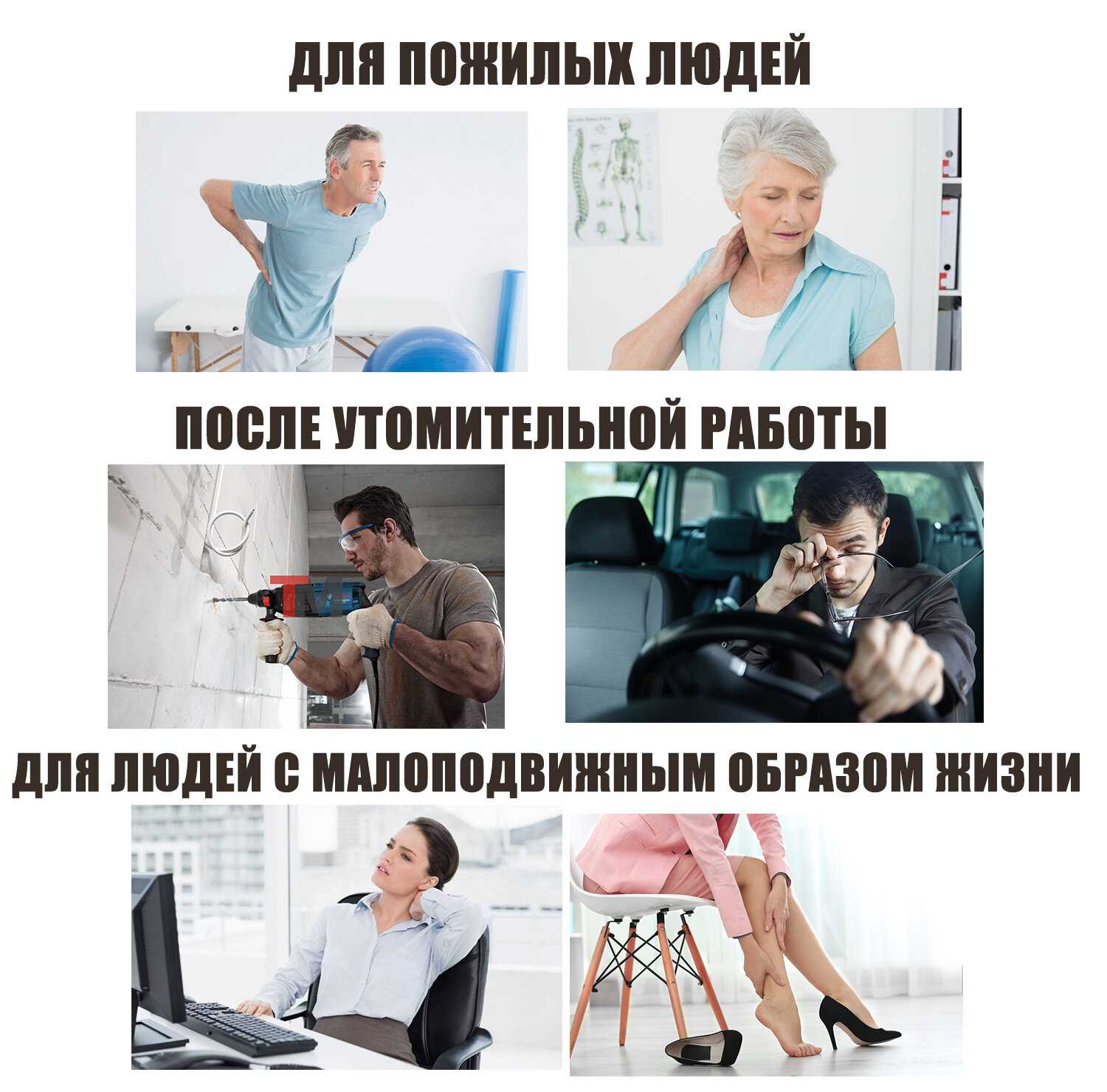 - Снимает напряжение в спине, шее, животе и ногах после рабочего дня.