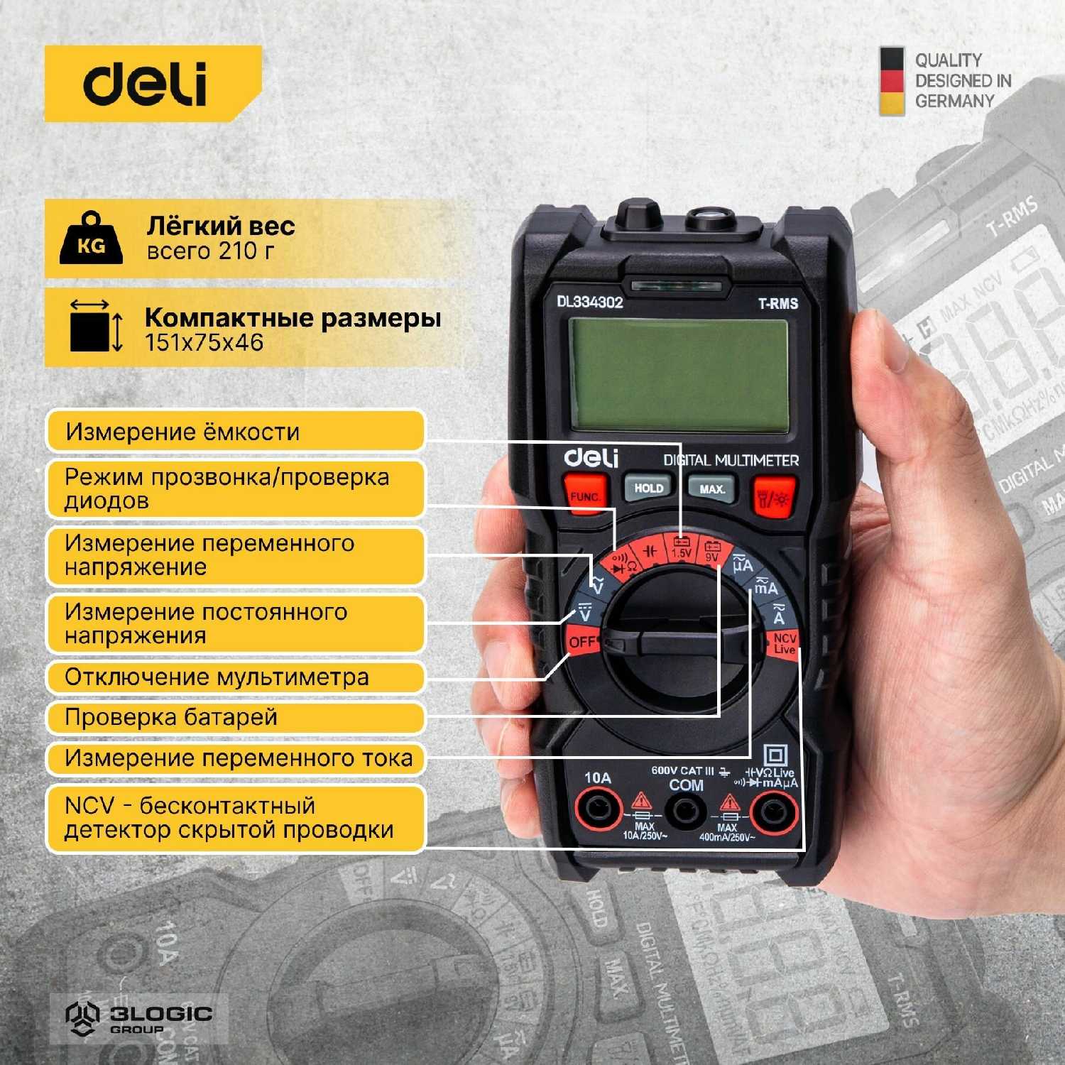 | Особенности : | автоматическое выключение, защита от перегрузки, подсветка дисплея, фиксация измерений, фонарик |