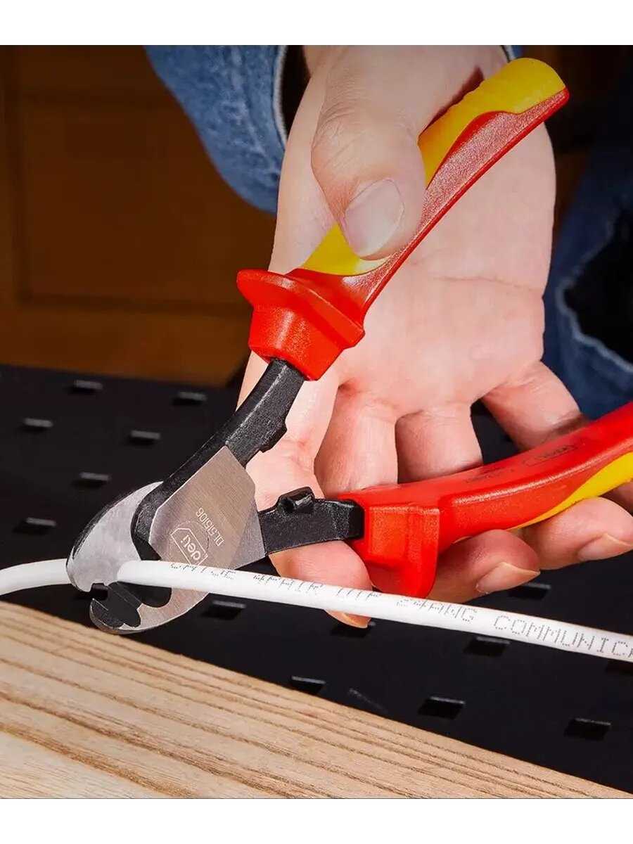 Первый раз беру кабелерез, раньше подобным инструментом не пользовался и зря, резать кабель удобно, за счет закругления режущей кромки не мнет изоляцию.