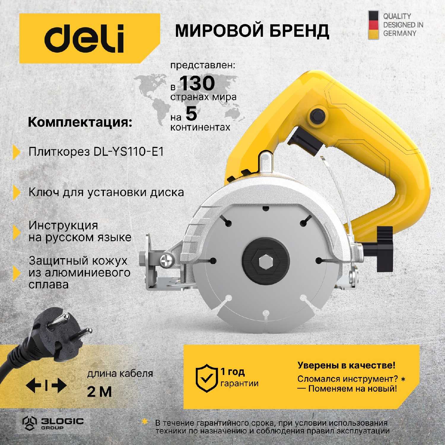 | Комплект поставки : | 1)Дисковая пила по камню (плиткорез) Deli DL-YS110-E1 |
