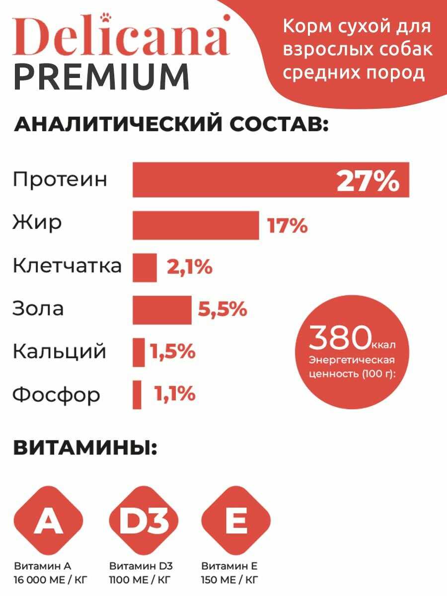 Сравнение с конкурентами: По сравнению с Purina, Delicana вызывает меньше аллергий — владельцы стаффов отмечают отсутствие реакций, в отличие от Purina. Гранулы Delicana крупнее и плотнее, чем у бюджетных аналогов, что лучше для средних пород, но пожилым собакам Purina проще жевать. Палатабельность выше у Delicana для привередливых собак: после других кормов животные отказываются от них и возвращаются к Delicana. Состав чище — без скрытой курицы, в отличие от ряда массовых брендов, где это провоцирует рыжий окрас шерсти. Цена-качество выгоднее Purina по отзывам: на год кормления хватает дольше при той же массе. Линейка Delicana (индейка, лосось) позволяет чередовать вкусы без смены бренда, чего нет у монобрендов. Однако Purina реже вызывает отказ от еды у 5% собак. Delicana превосходит в улучшении шерсти и стула по 60% сравнений. Бюджетные корма уступают в белке и свежести, вызывая ЖКТ-проблемы чаще. В целом, Delicana выигрывает у Purina для чувствительных собак средних пород по здоровью, но уступает в мягкости гранул.