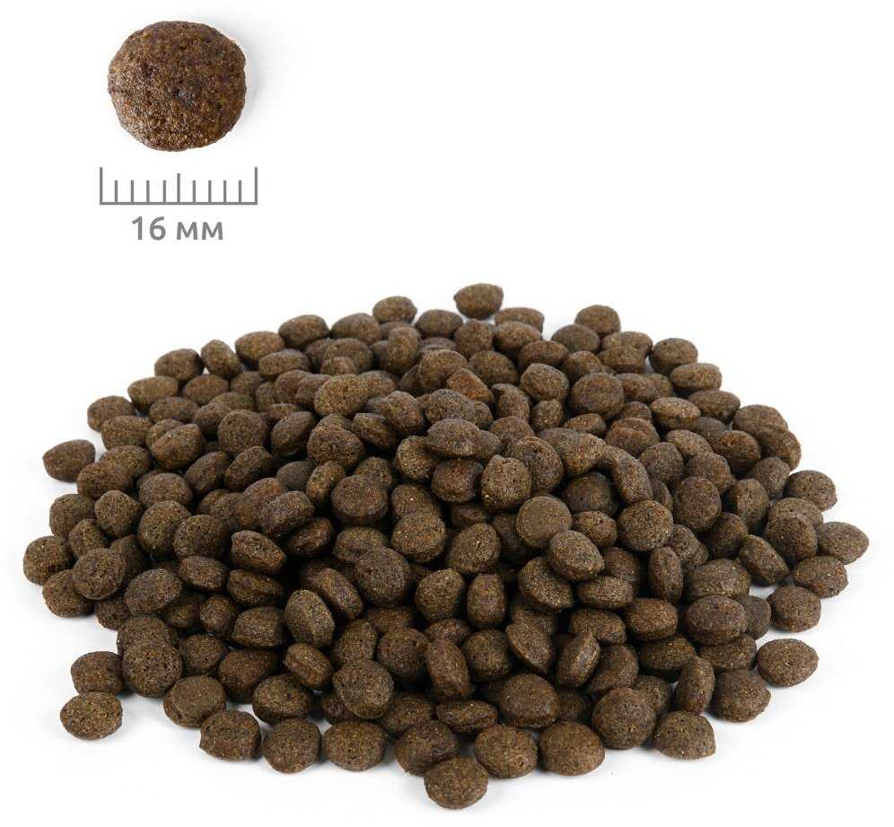 Гранулы имеют средний размер, оптимальный для собак средних пород вроде биглей и золотистых ретриверов. Животные не испытывают трудностей при поедании, и корм подходит для собак весом 15 кг. Запах гранул приятный, что стимулирует аппетит. Для пожилых собак гранулы иногда бывают тяжёлыми для разгрызания, но молодые питомцы справляются без проблем. Владельцы подтверждают удобство размера в повседневном использовании. -