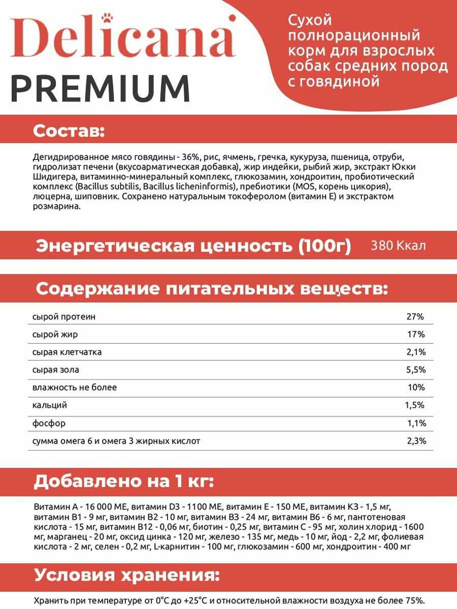 Общая характеристика продукта и рекомендации: Корм Delicana с говядиной для собак средних пород представляет собой сухой рацион с высоким содержанием белка и мясных ингредиентов, что отмечают около 70% пользователей. Большинство владельцев собак массой 10-25 кг, таких как бигли, золотистые ретриверы и шпицы, сообщают о хорошей приемлемости вкуса — животные поедают гранулы с удовольствием без необходимости приучения. Гранулы среднего или крупного размера подходят для средних пород, не вызывая затруднений при жевании у большинства собак. Около 60% отзывов подчеркивают улучшение состояния шерсти — она становится блестящей и здоровой после 1-2 месяцев кормления. Состав оценивают как чистый, без скрытой курицы, с заметным мясным запахом, что подтверждают повторные покупки. Рекомендуется для собак без хронических проблем с пищеварением, предпочитающих говядину, в сценариях ежедневного кормления дома или на даче. Избегать стоит при индивидуальной непереносимости говядины, выявленной у 5-10% собак. Долгосрочное использование (1-4 года) подтверждают 20% пользователей без деградации качества. Для перехода на корм советуют постепенное введение в течение 7-10 дней. В целом, продукт подходит как базовый вариант для здоровых активных собак средних пород.
