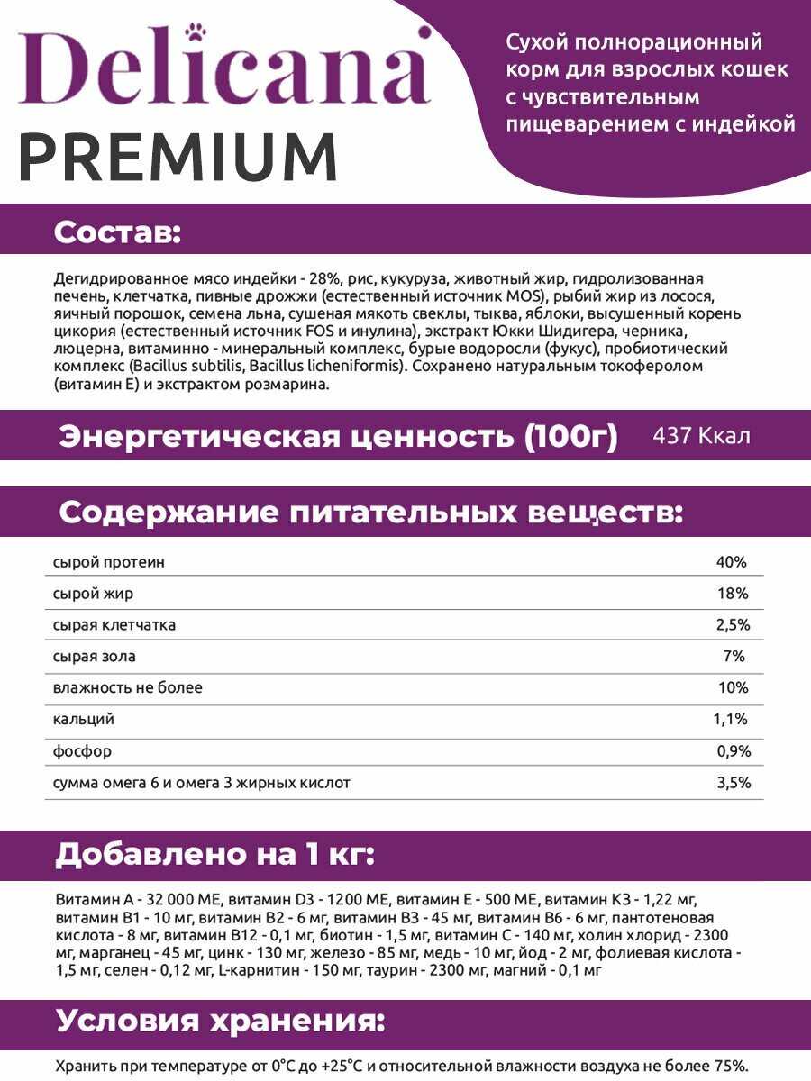Обзор Delicana индейка для кошек с чувствительным пищеварением - мнение пользователей*: