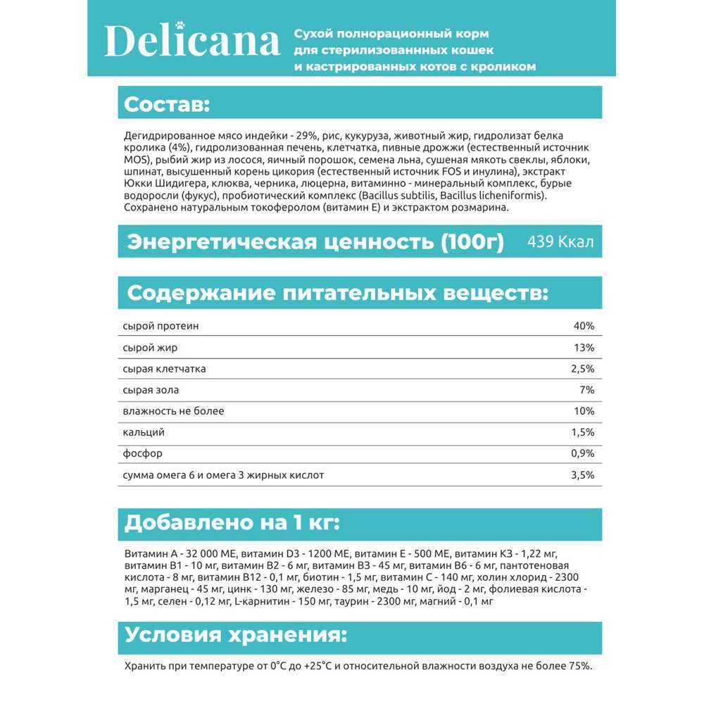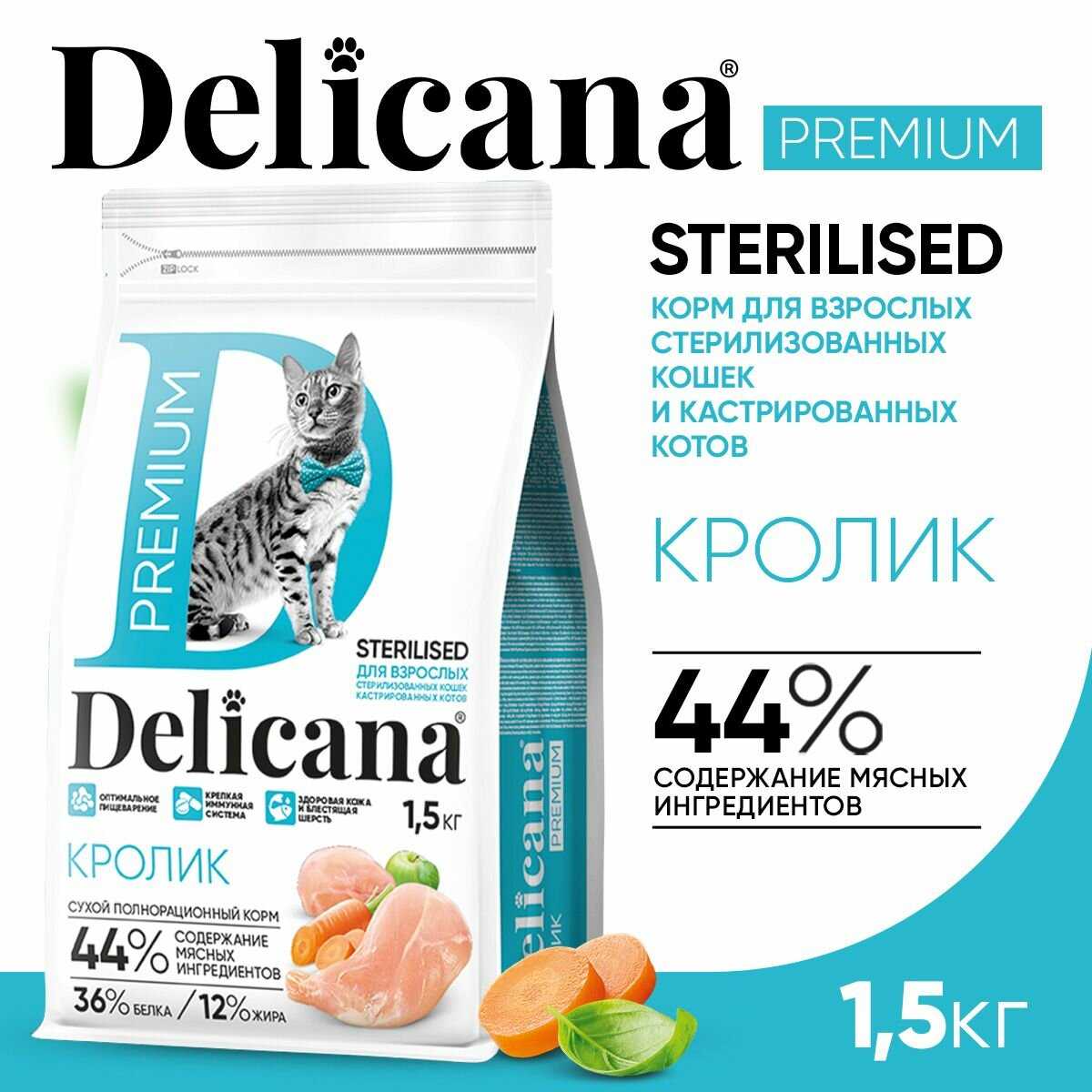 Отзывы о Корм для стерилизованных кошек и кастрированных котов Delicana с кроликом