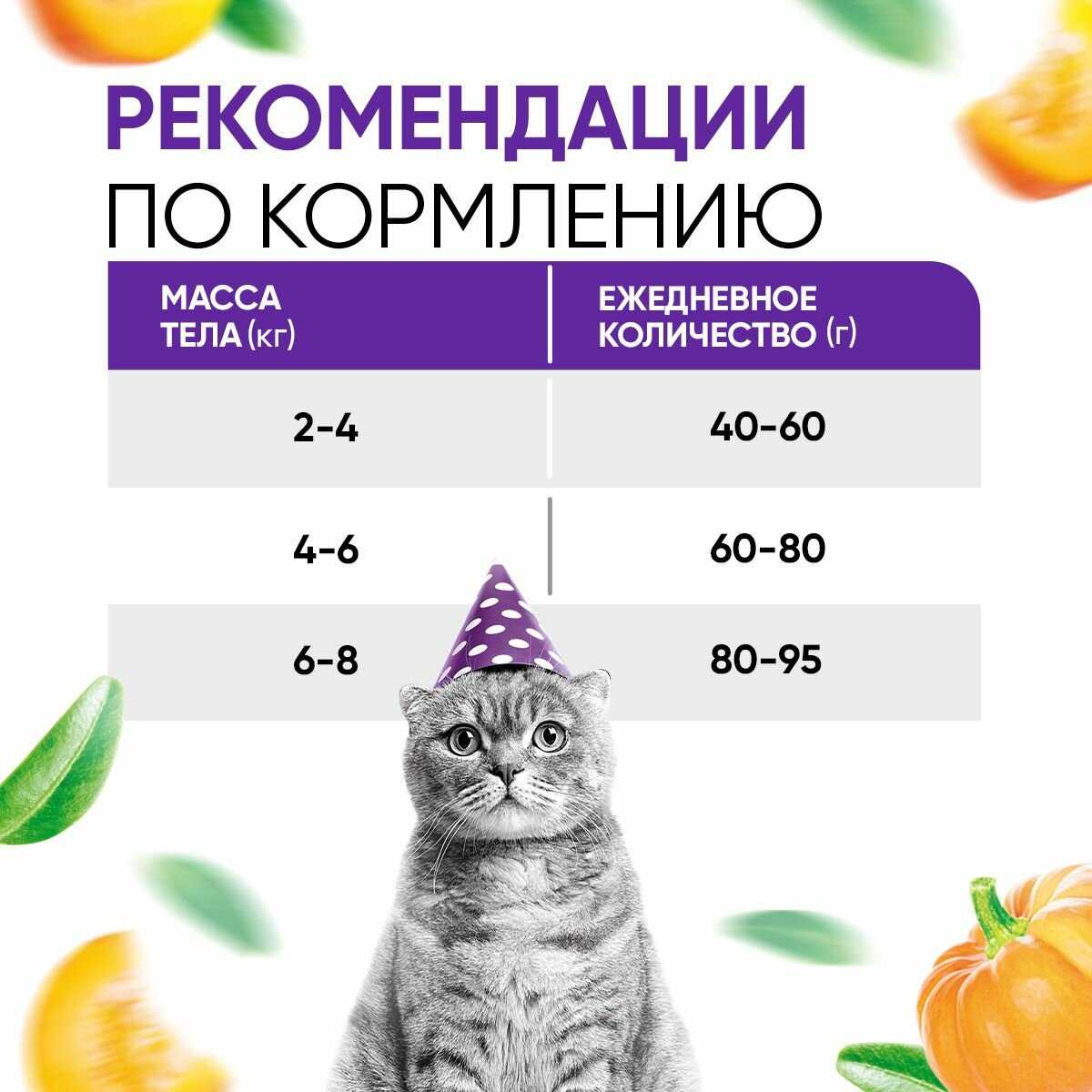 - Сниженное количество жиров (особенно во вкусе "Индейка") поддерживает вес кастрированных котов без потери питательности.