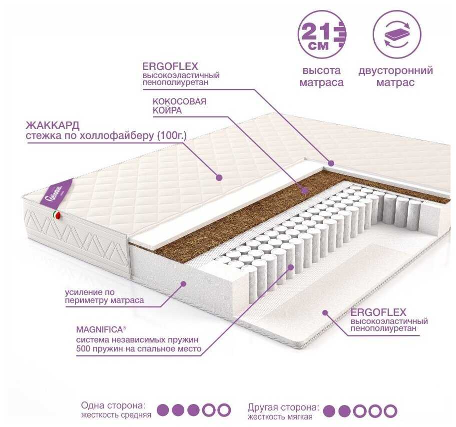 Красивый, приятный на ощупь матрас. В меру жесткий, очень комфортно спать!!