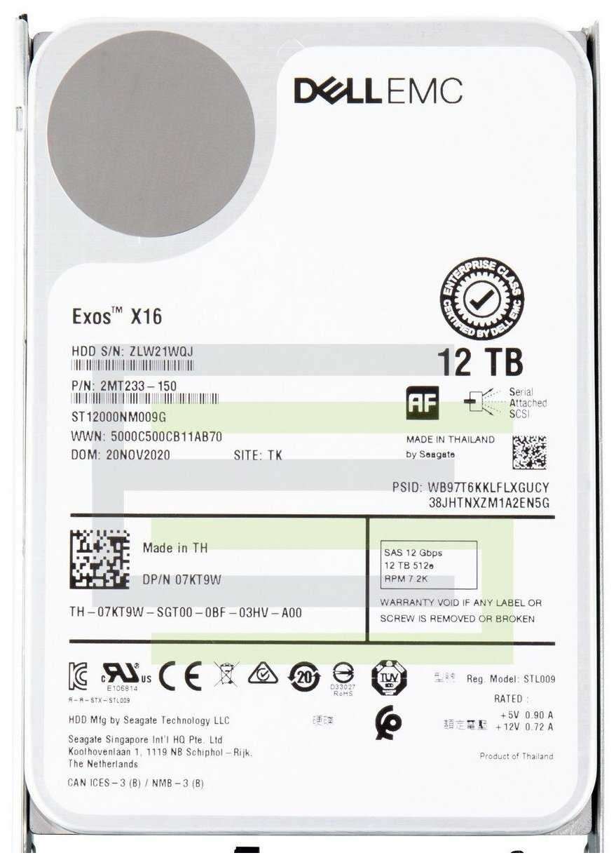 ΠΡΠ·ΡΠ²Ρ ΠΎ ΠΠ΅ΡΡΠΊΠΈΠΉ Π΄ΠΈΡΠΊ Dell EMC 12TB 7.2K 12G 3.5" SAS HDD ST12000NM009G HDD 07KT9W