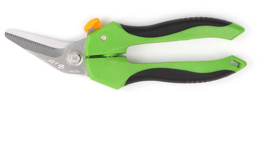 Дополнительная информация : | универсальные изогнутые ножницы, материал рукояток: полипропилен термопластичная резина, изготовлены из нержавеющей стали 420J2 50—54 HRC, применяются для резки: картона пластмассы верёвок канатов кевлара проводов из цветного металла а также веток растений, длина режущей кромки: 42 мм, не предназначены для реза стальной проволоки и листового железа |