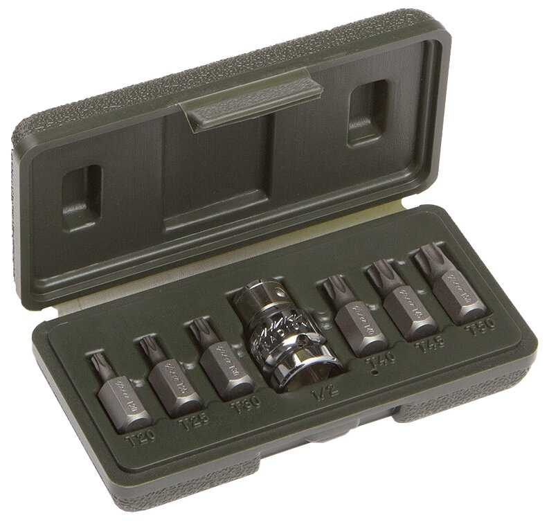 | Биты подробно : | 30 мм: Т20 Т25 Т30 Т40 Т45 Т50, переходник 1/2''Fх3/8''F |