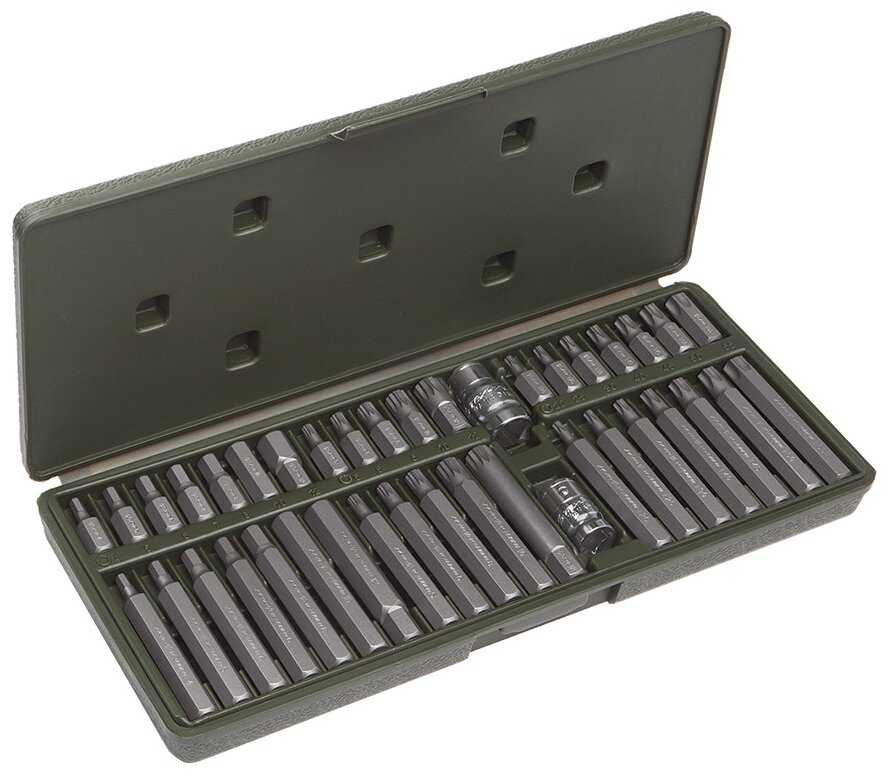 Очень доволен данным набором. В мастерской незаменимая вещь. Изготовлены биты из хорошего металла. Удобный футляр с нумерацией размеров бит. Рекомендую!