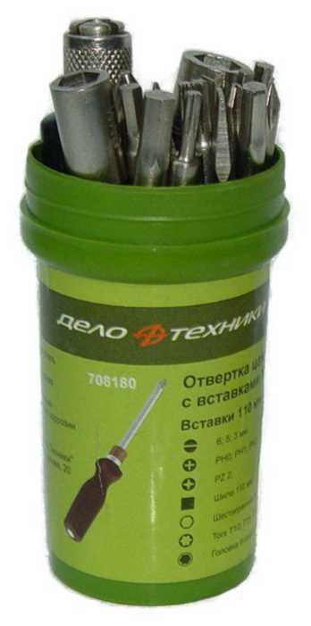 Хороший, большой комплект в компактном пенале, для мелких работ по дому подойдет "на все случаи жизни". Если кому-то чего-либо не хватит, в пенале еще есть место для нескольких "насадок".