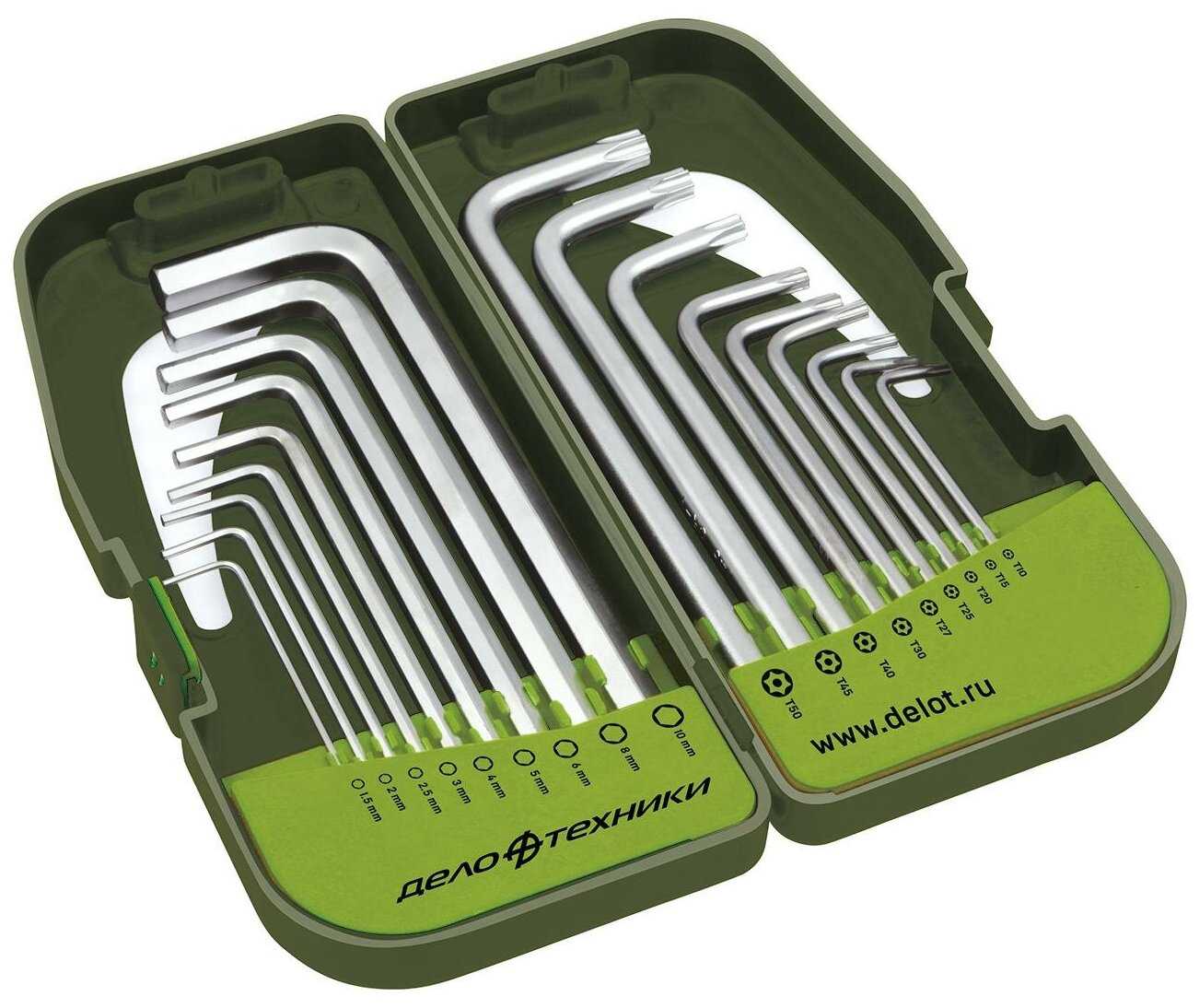 - Π Π½Π°Π±ΠΎΡ Π²ΠΊΠ»ΡΡΠ΅Π½Ρ ΠΎΠ±Π° ΡΠΈΠΏΠ° ΠΏΡΠΎΡΠΈΠ»Π΅ΠΉ (Hex ΠΈ TORX) Π² Π΄ΠΈΠ°ΠΏΠ°Π·ΠΎΠ½Π΅ ΠΎΡ 1.5 Π΄ΠΎ 10 ΠΌΠΌ.
