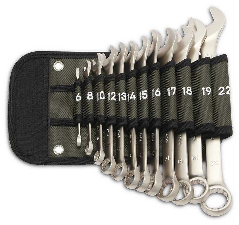 - + Хорошие ключи. Все ходовые размеры в наличии. Приятное качество исполнения, хорошо лежат в руке. Удобный чехол-скрутка. Как по-мне – идеальный набор в автомобиль.
