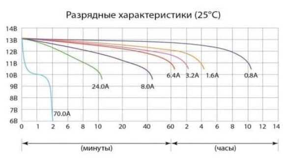 - После глубокого разряда (ниже 10.5 В) восстановление невозможно, в отличие от классических свинцовых АКБ.