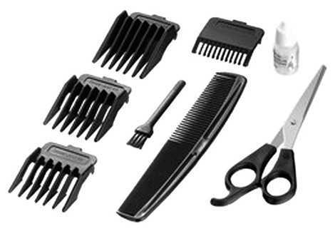 В комплекте шли насадки для машинки,расческа,масленка и ножницы. Тут некоторые пишут о том что машинка дерет волосы,это действительно так если ее не смазать идущим в комплекте маслом. Стоит капнуть пару капель на место которым машинка режет волосы и она перестает драть и щипаться.