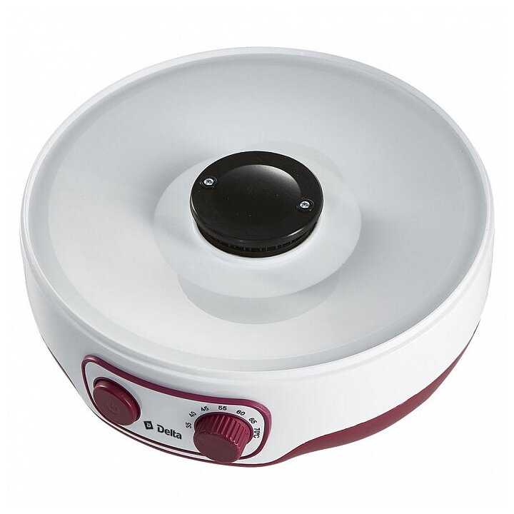 Интересно, как кнопка включения размером с регулировку температуры. Небольшого размера сушилка, удобная помещается на кухонном столе и еще остаётся место. Хорошо, что у неё прозрачные тарелки можно наблюдать как продукт сохнет не открывая её.