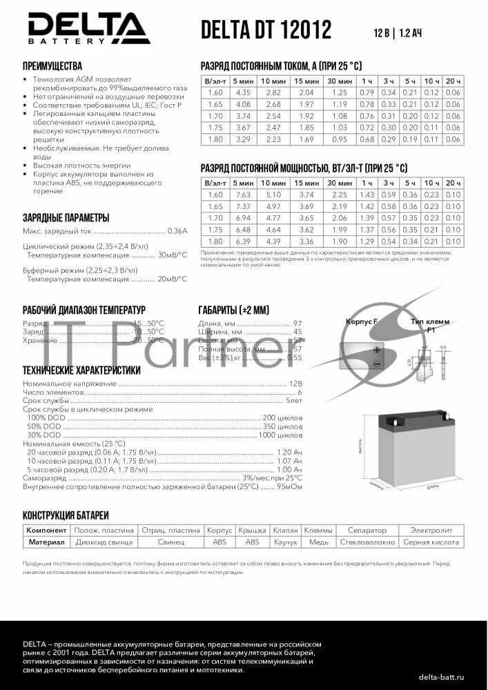 Отзывы о Аккумуляторная батарея DELTA Battery DT 12012 (12В)