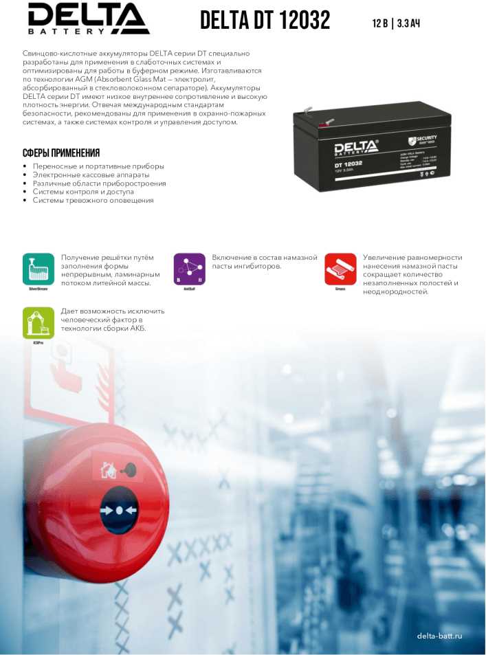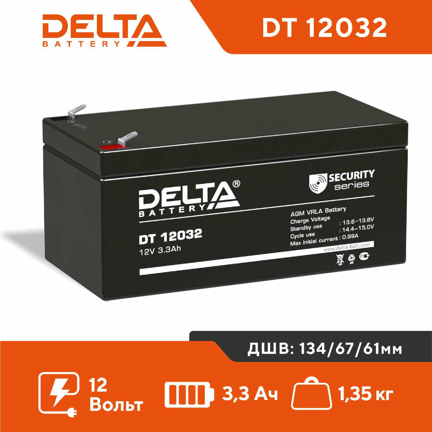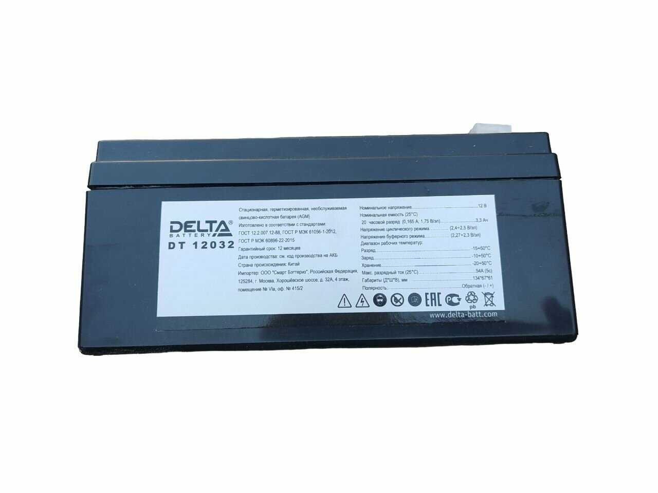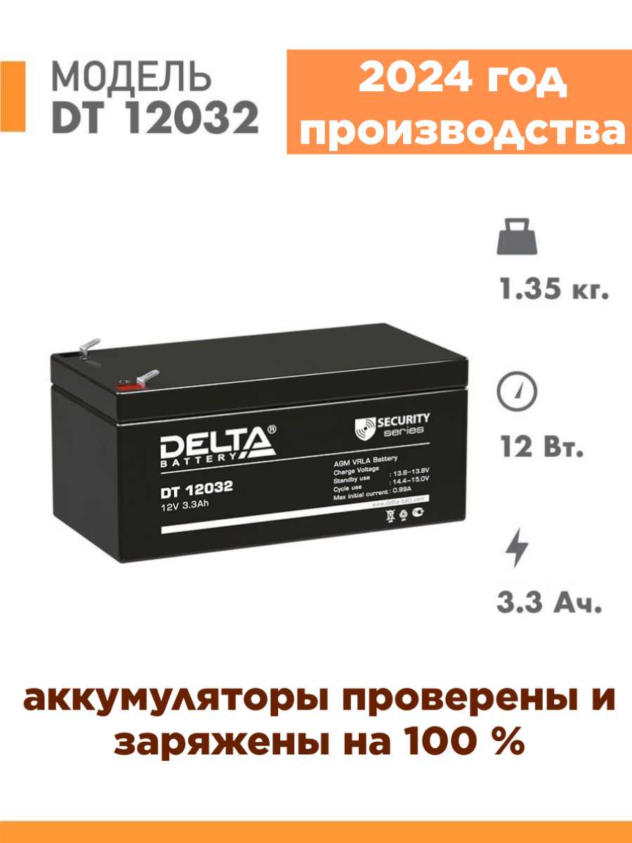 Дополнительная информация : | Delta Аккумуляторная батарея DT 12032 (12V/3.3Ah) |