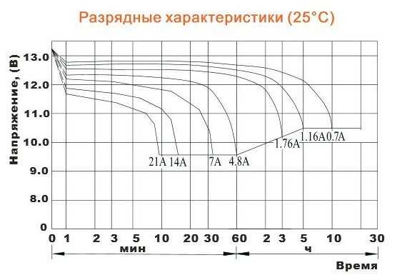 - Поддерживает ток разряда до 0.3C (2.16 А) без критического падения напряжения, что важно для ИБП с активной коррекцией мощности.