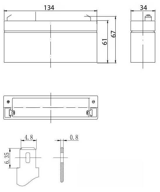 | Высота с учетом полюса (контактного вывода) : | 67 мм |