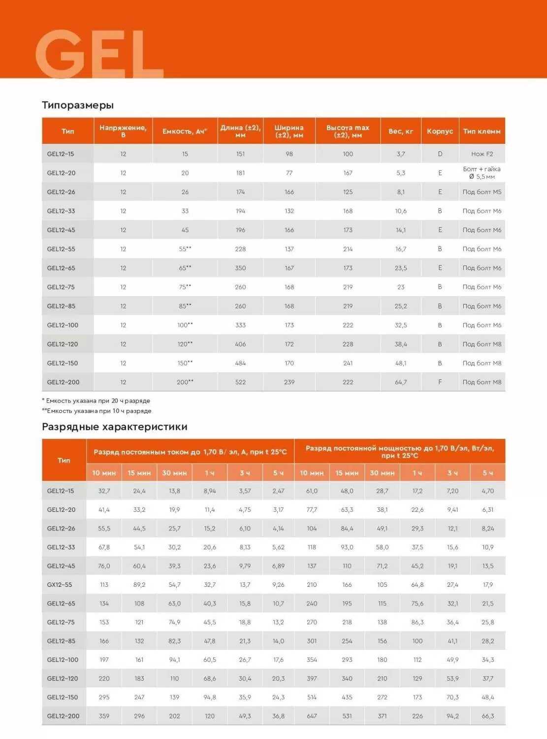 - Гелевая технология (GEL) предотвращает сульфатацию пластин, позволяя разряжать аккумулятор до 0% без потери ёмкости — пользователи отмечают 3+ года эксплуатации в циклическом режиме (заряд/разряд).