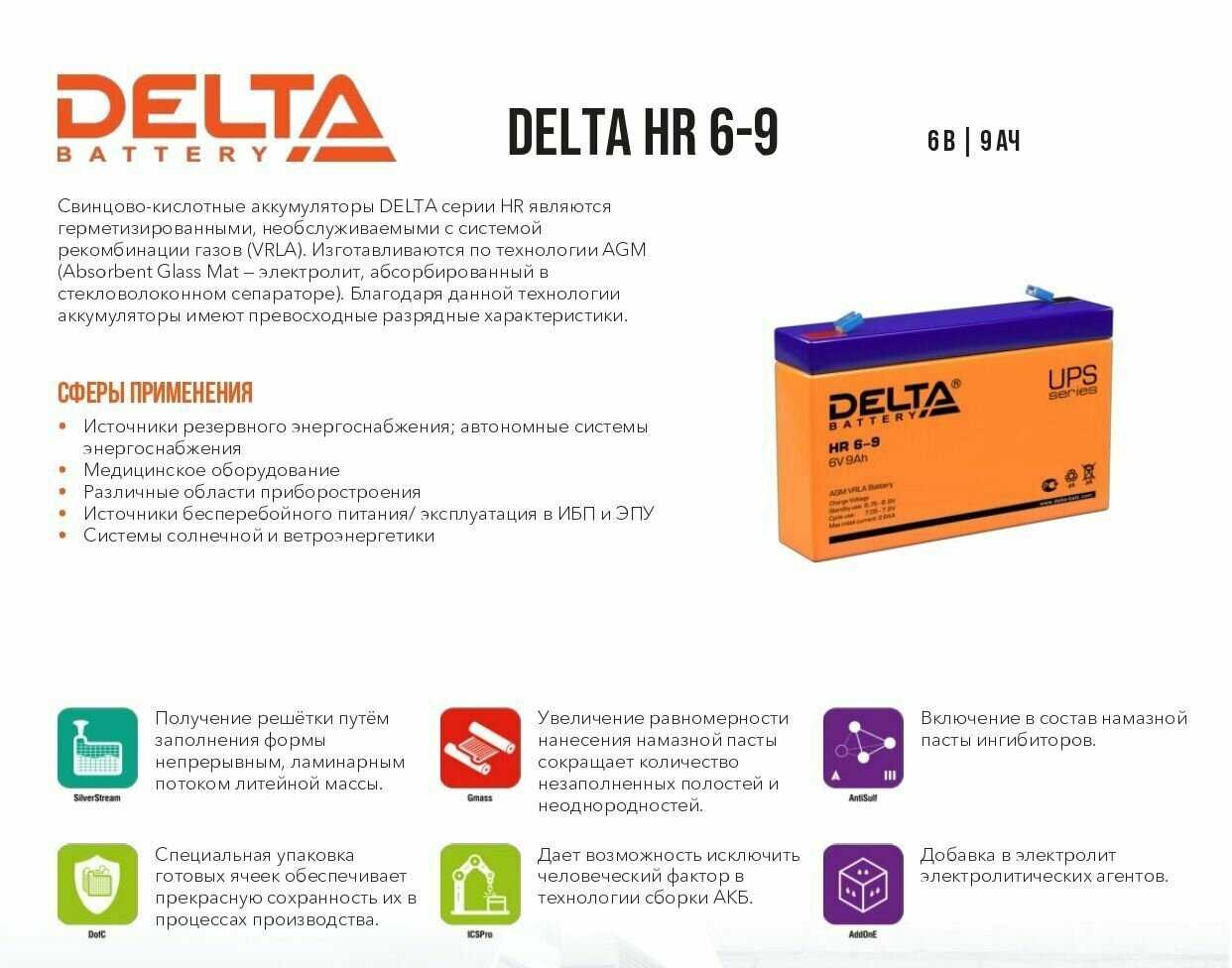 Отзывы о Аккумуляторная батарея DELTA HR 6-9 (634W)