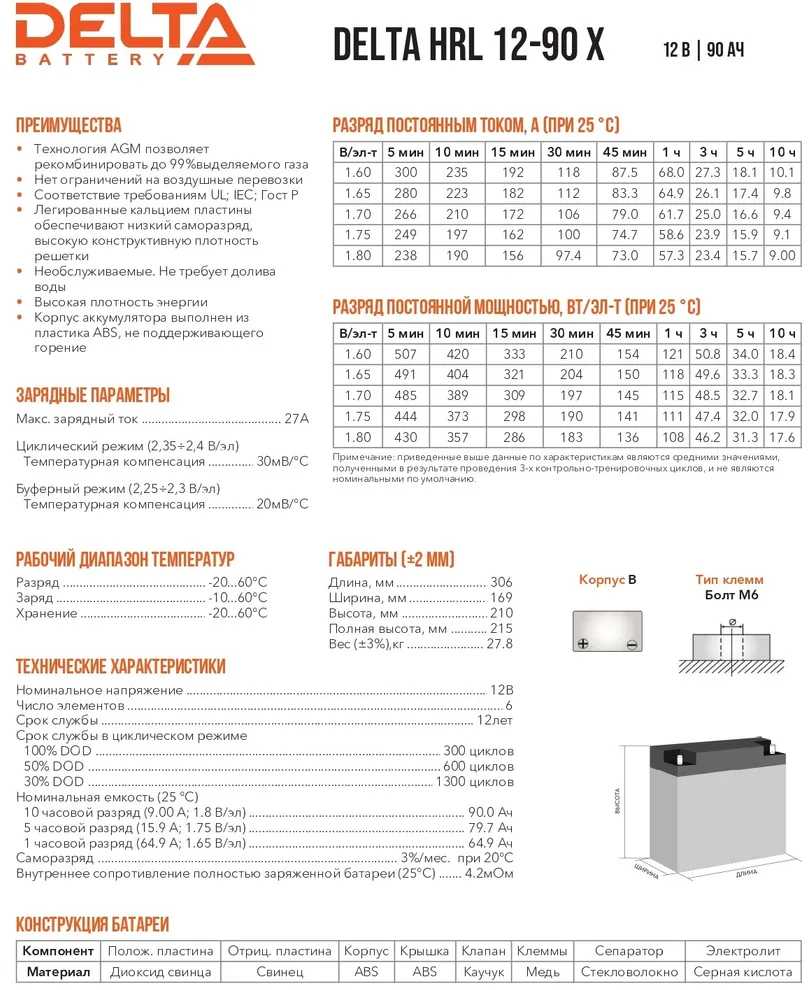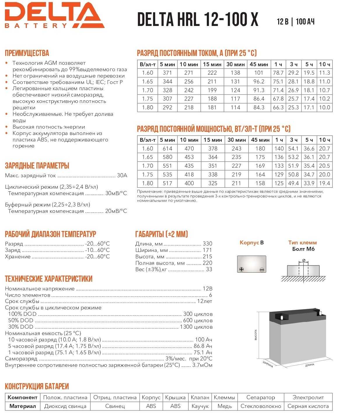 Отзывы о Аккумуляторная батарея DELTA Battery HRL 12-100 X (12В)