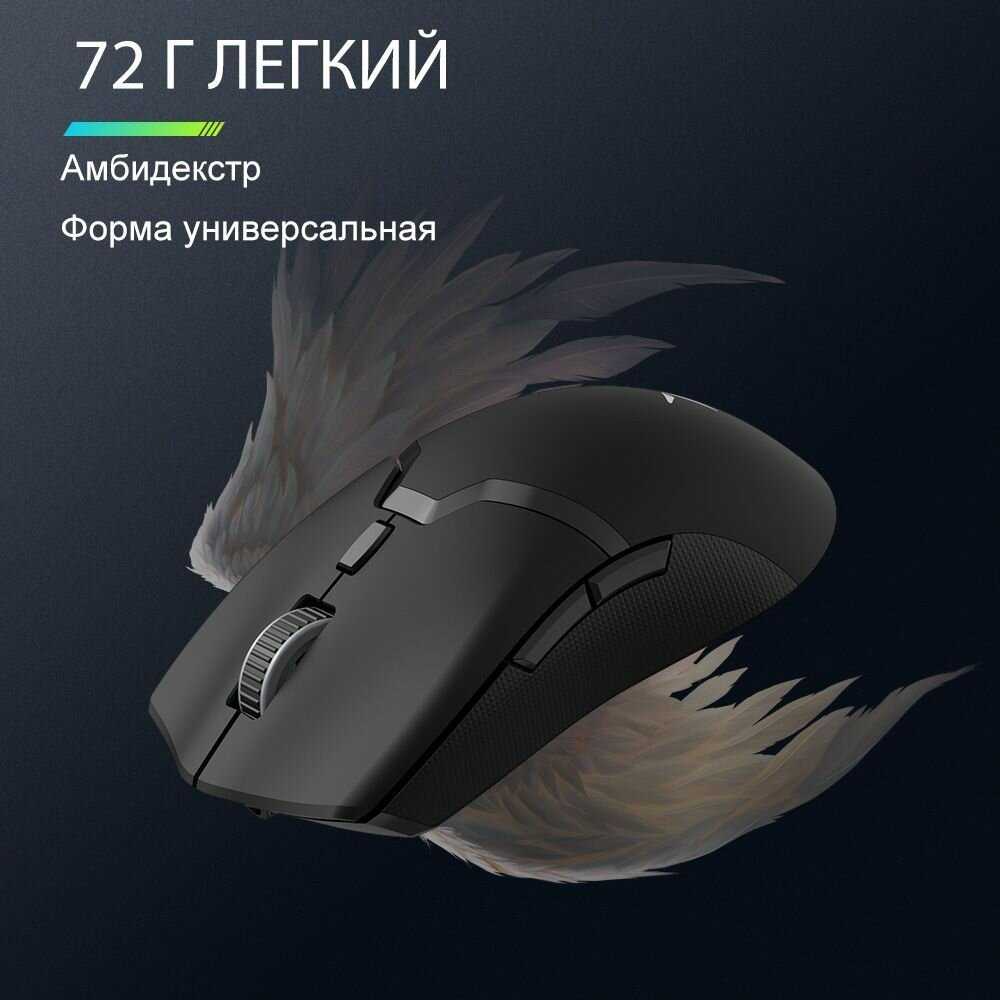 Гибридная мышь. Можно пользоваться как в проводном режиме, так и в беспроводном. RGB подсветка шикарна.