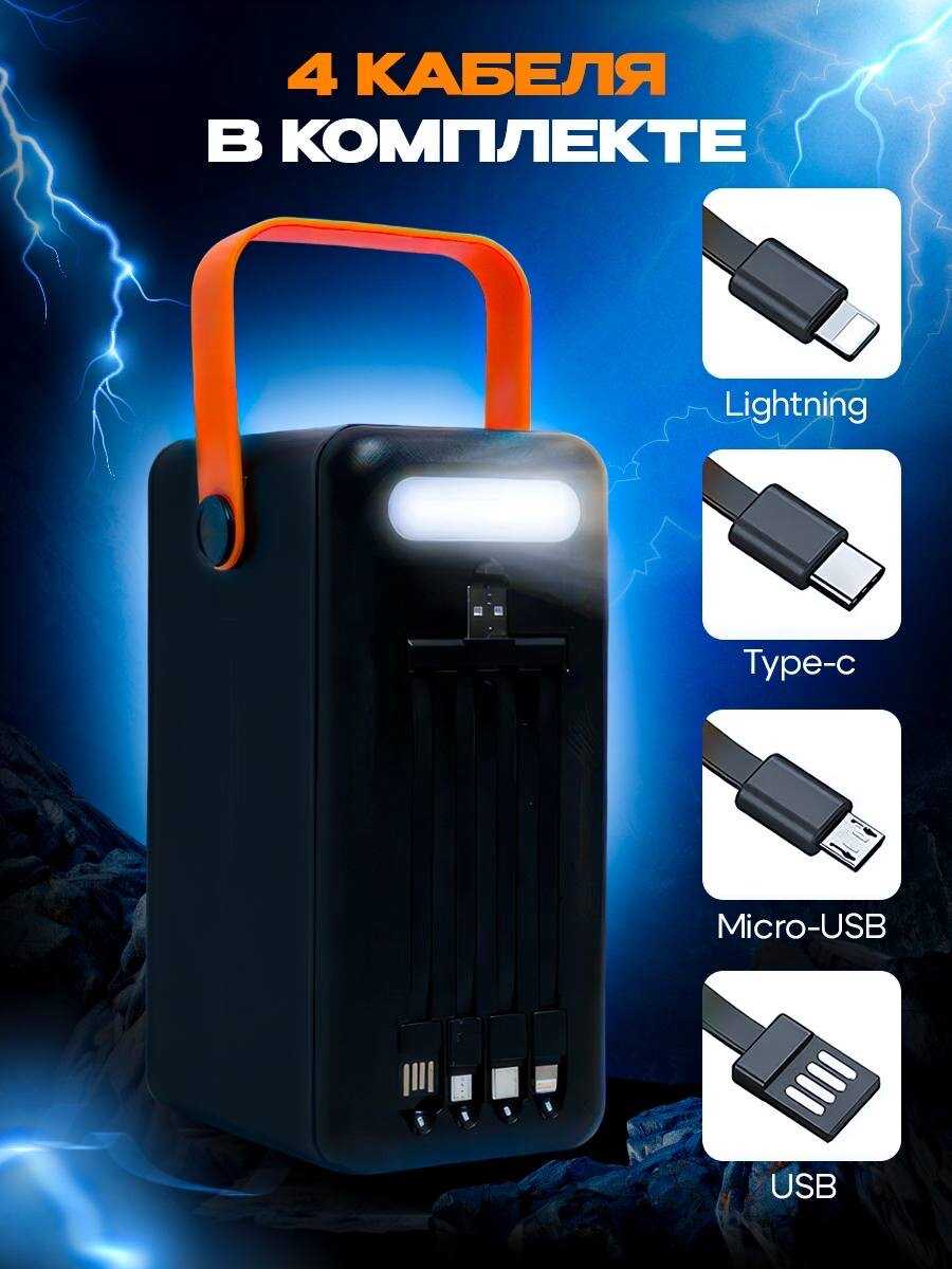 Устройство включает встроенные кабели Type-C и Lightning, что подтверждают 4 отзыва. Это удобно для одновременного подключения Android и iPhone без дополнительных проводов. Однако отсутствие сменных кабелей ограничивает гибкость при поломке. -