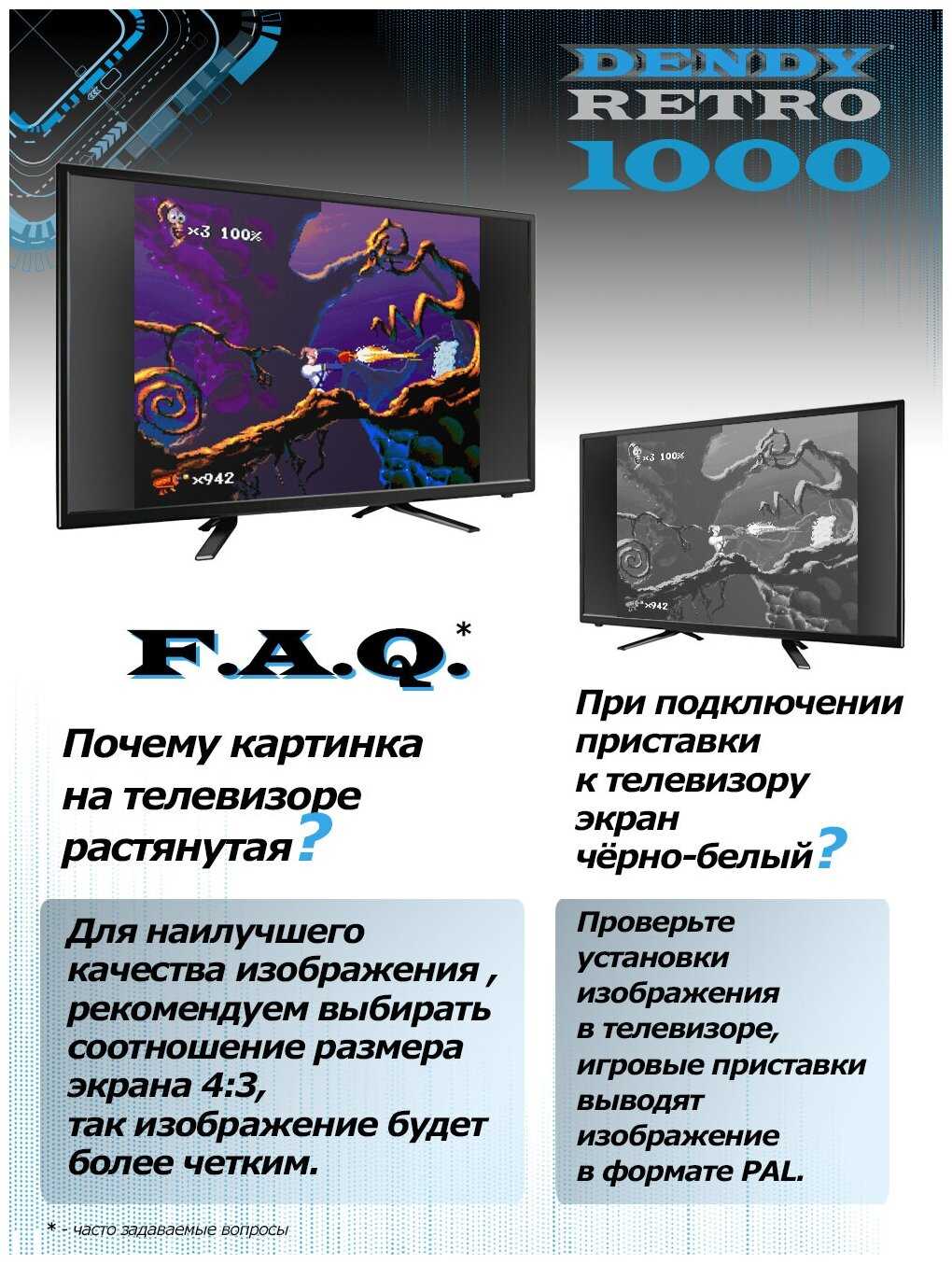 На телевизорах до 32 дюймов графика выглядит аутентично. На крупных диагоналях (55"+), особенно плазмах, возможна "зернистость", но это характерно для всех 8-битных консолей. Цветопередача может незначительно искажаться на Philips-панелях. -