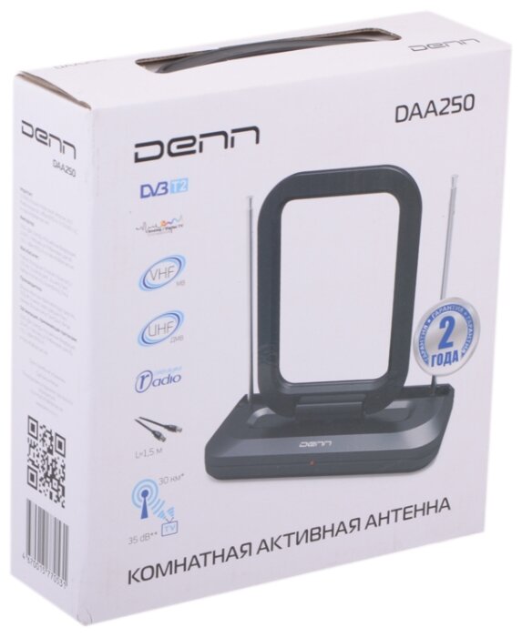 За 10 дней до этого приобрёл в другом сетевом магазине за 1290 руб активную антенну белого цвета Рэмо BAS-5127 Буран - позволяла смотреть только с 10-го по 20-й каналы и то с перебоями и зависаниями - сегодня её сдал (возврат), зашёл в ДНС и купил эту умничку Denn DAA250 за 1199 руб.
