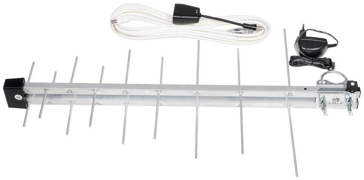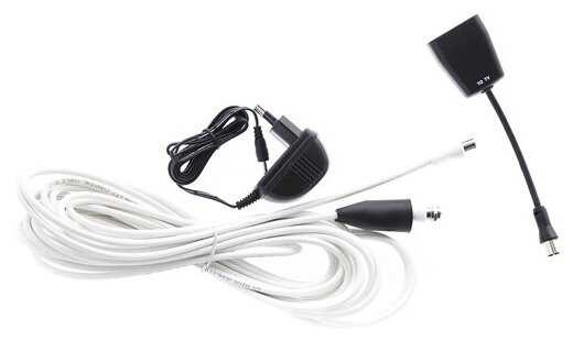В стандартный комплект входит сама активная антенна, коаксиальный кабель длиной примерно 8-10 метров с уже установленными разъемами, блок питания (инжектор) для усилителя и резиновый защитный колпачок для уличного подключения. Некоторые пользователи отмечают отсутствие кронштейна для крепления, поэтому его может потребоваться приобрести отдельно в зависимости от способа монтажа. -