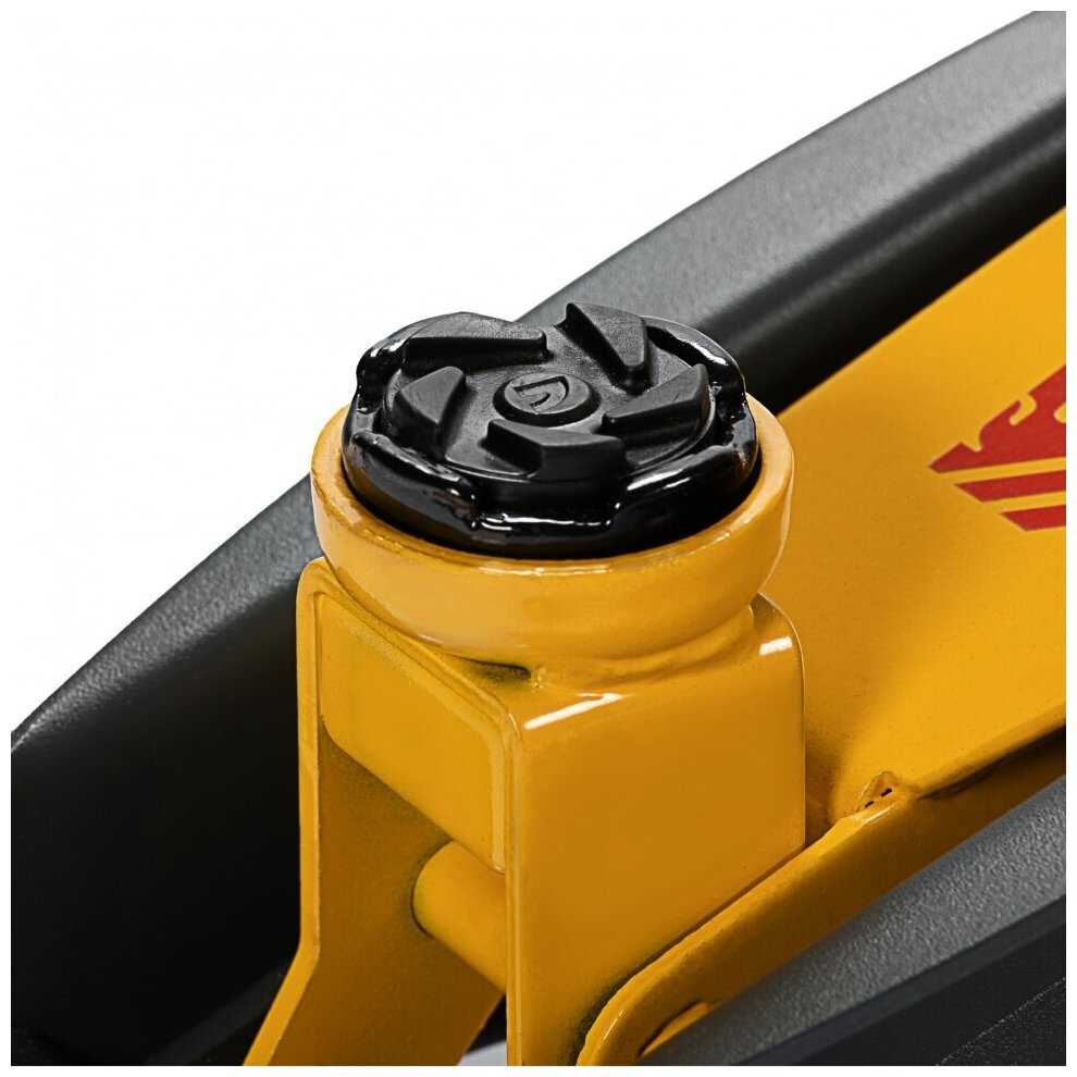 - Длинная рукоятка (около 1 м) позволяет регулировать высоту одной рукой с минимальными физическими усилиями.