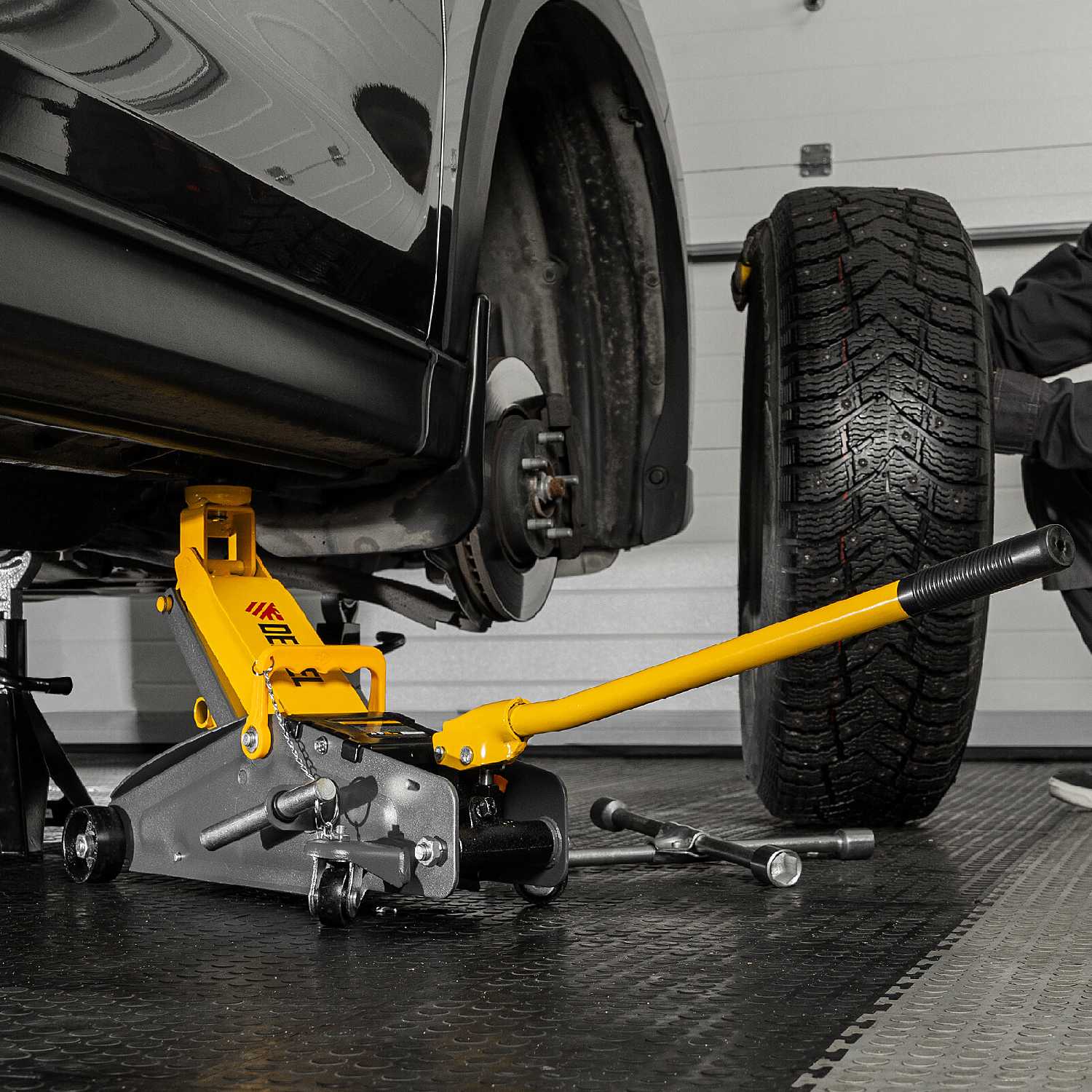 - Автомобиль поднимается за 3–5 качков, что ускоряет замену колес.