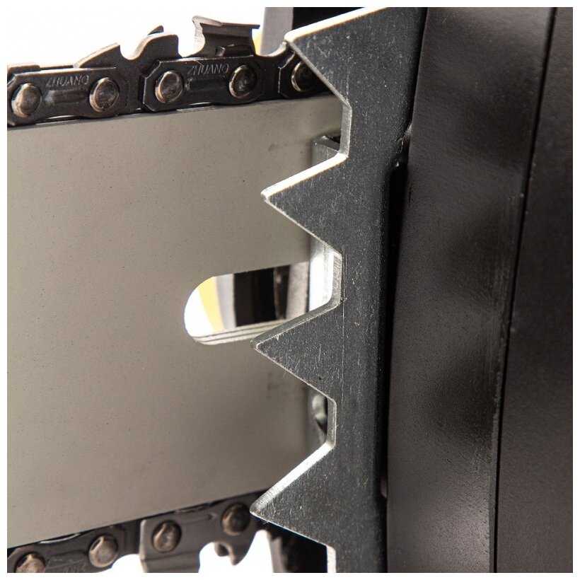 Особенности конструкции : | антивибрационная система, бесключевая замена оснастки, блокировка кнопки включения, регулировка натяжения цепи без инструмента |