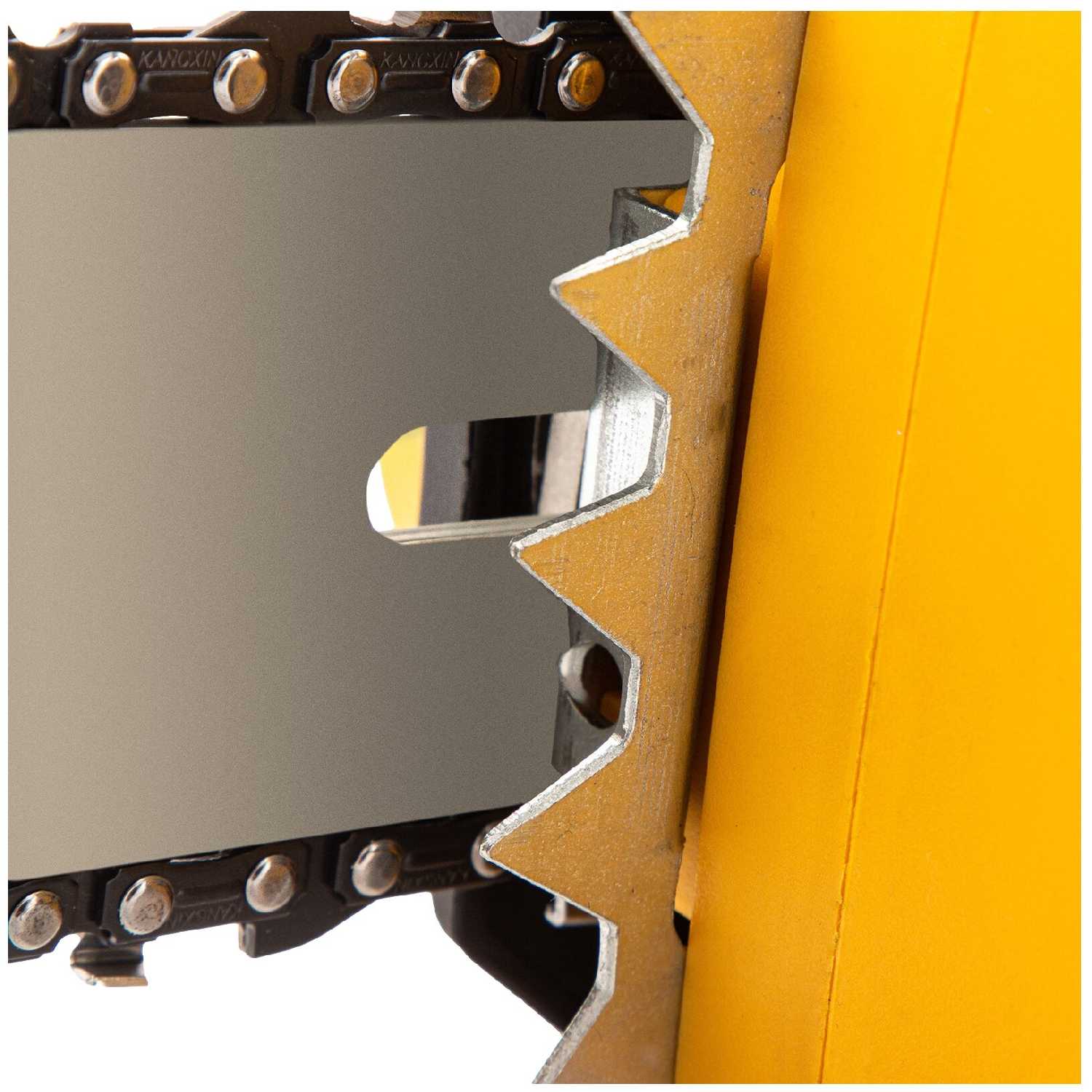 - - Как по мне, устройство быстрого натяжения цепи, в таких мощьных пилах- не приемлемо! В целях безопасности!!! Здесь ещё штуцер длинный, на который навинчивается гайка(натяжения цепи). В зубре(аккумуляторный, безщёточный)- вообще на 1,5 оборота прикручивается. Если нормально пользоваться(пилить, а не смотреть на пилу)- то можно убить себя и окружаюших!!! В Дензнле- не так( под 3 оборота есть), но всё равно лучше было бы на 2 гайках. Но такую модель делают только с натяжителем цепи(без ключа).