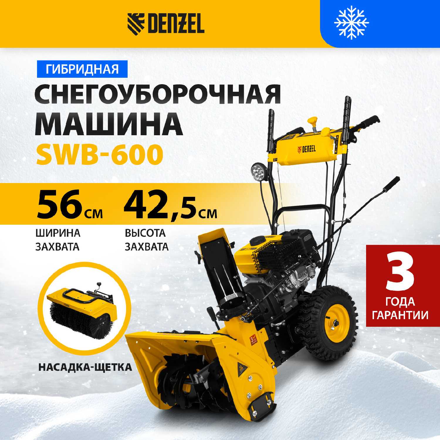 22 отзывов пользователей o Denzel Гибридная снегоуборочная машина с функцией подметания SWB-600