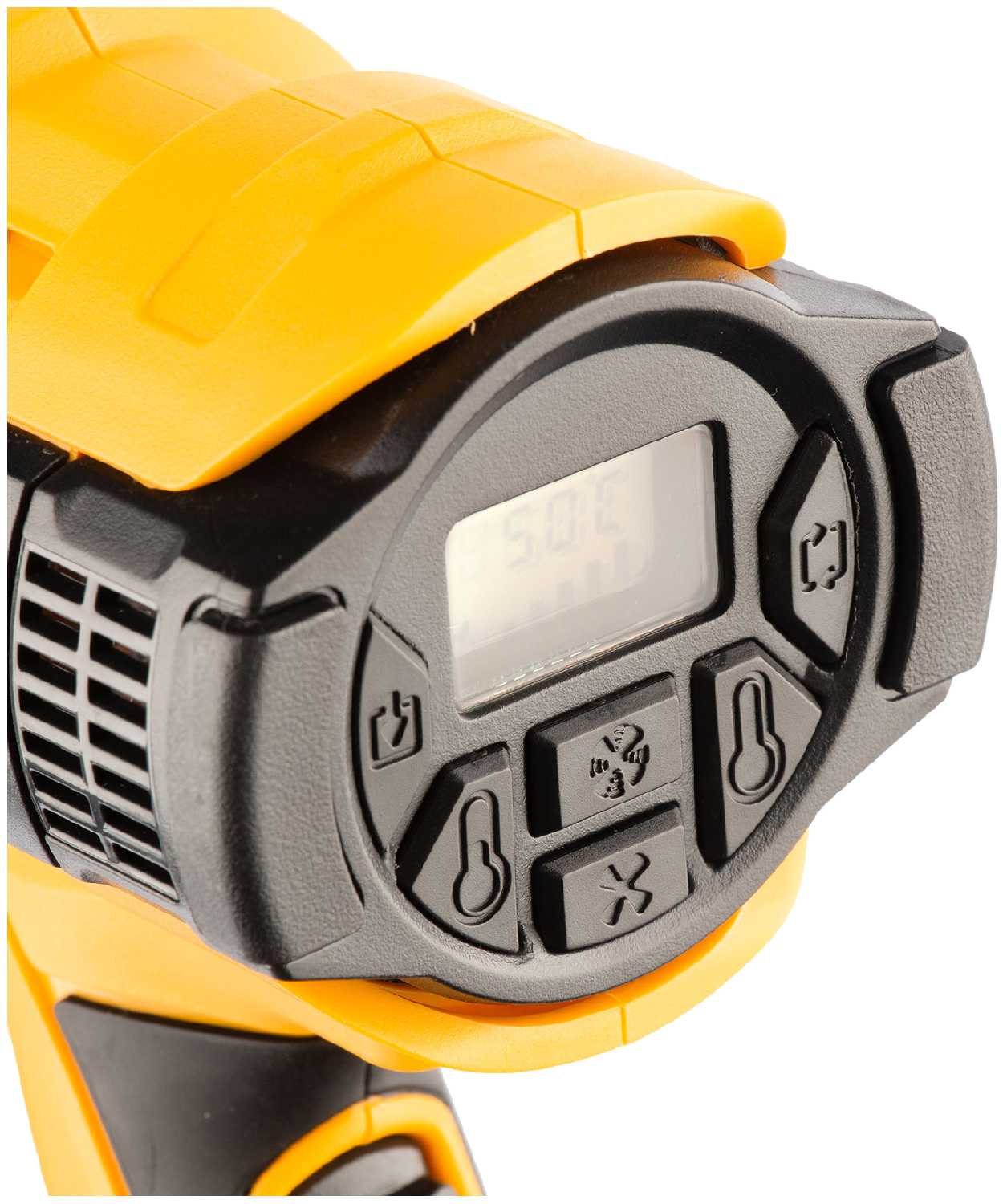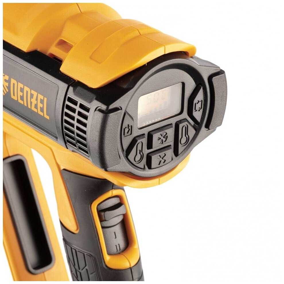 - ЖК-дисплей отображает текущие настройки, что позволяет точно контролировать нагрев для деликатных задач (снятие пленки с ДСП, пайка резинокомпозита).