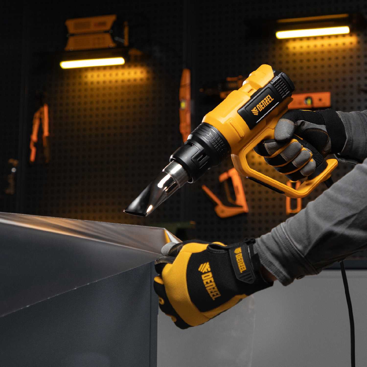 Пользователи активно применяют строительный фен Denzel для широкого спектра задач, подтверждая его высокую эффективность. Он успешно справляется со снятием старой краски и лака с мебели и деревянных поверхностей, демонтажем пленки с ДСП, термоусадкой тентов, тонировкой автомобильных стекол, деликатным локальным нагревом, гнутьем пластика, лужением посуды и даже пайкой резинокомпозита. Мощности (часто упоминается 2000W) хватает для быстрого нагрева и выполнения перечисленных операций. Пользователи отмечают, что инструмент существенно экономит время и повышает качество работы по сравнению с ручными методами или менее мощными аналогами, делая процессы менее трудоемкими.