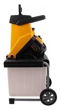 Аппарат легкий и оснащен колесами, что делает его достаточно мобильным для переноски и перекатывания по ровным поверхностям. Однако небольшие колеса, расположенные близко друг к другу, плохо справляются с неровностями грунта или мелкими перепадами высоты на дорожках, из-за чего измельчитель может заваливаться на бок. Для работы на ровных площадках его мобильность оценивается положительно. -