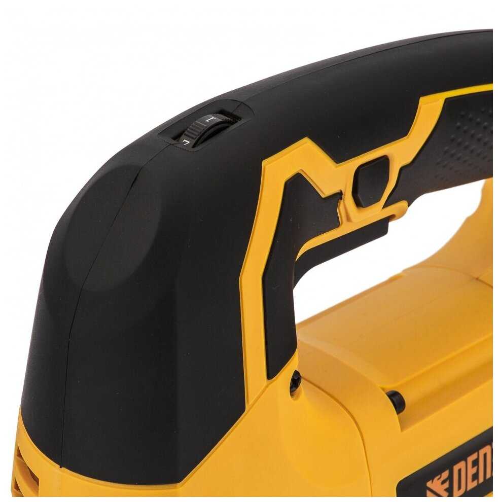 Denzel JS-110 выделяется высокой мощностью, что подтверждается примерами из отзывов: пользователи легко распиливают брус толщиной 70 мм на первом положении маятникового механизма. Тяжёлый корпус (от 2 кг) обеспечивает устойчивость — инструмент не «прыгает» по поверхности, что критично для точности реза. Однако при максимальной скорости маятника пилка может уводить в сторону на 1-2 мм, особенно при работе с плотными материалами. Это связано с повышенной вибрацией на высоких оборотах. Мощность двигателя также позволяет работать с металлом и ПВХ, но для сложных задач, таких как фигурная резка, требуется опыт и контроль.